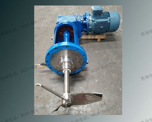 由桨式叶轮所形成的流动形式与后文介绍的涡轮式叶轮相似,也有径流和轴流之分。但桨叶的主要作用是具有较强的循环功能,大都用于需要叶片以排出(循环)作用为主要目的的搅拌。在排出量相同情况下,折叶桨的操作费用与动力消耗稍优于平叶桨。实际工程中,往往采用大直径低转速叶轮,尽管剪切作用不大,但罐内的循环良好。由于可用大直径的叶轮,故也可用于介质粘度达50Pa?s的搅拌。此时,为了使罐内上、下层介质易于交换,往往采用有3~5段的多段叶轮,或在桨叶上安装横向叶片。